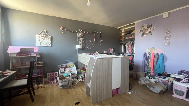 A l'étage: une grande chambre, salle de douche avec wc, chambre avec placard.