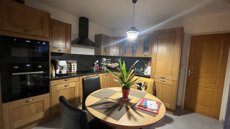 Superficie habitable de 100m² comprenant: Une entrée, un séjour de 38m² avec un conduit existant, cuisine aménagée et équipée avec un coin repas donnant sur l'extérieur, cellier / laverie, wc, salle de douche avec meuble vasque.