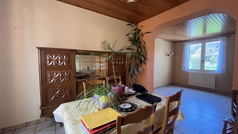 Comprenant: Une entrée dans la cuisine aménagée avec coin repas, salle / salon avec cheminée insert, salle de bains, wc, arrière cuisine donnant sur le garage avec grenier.