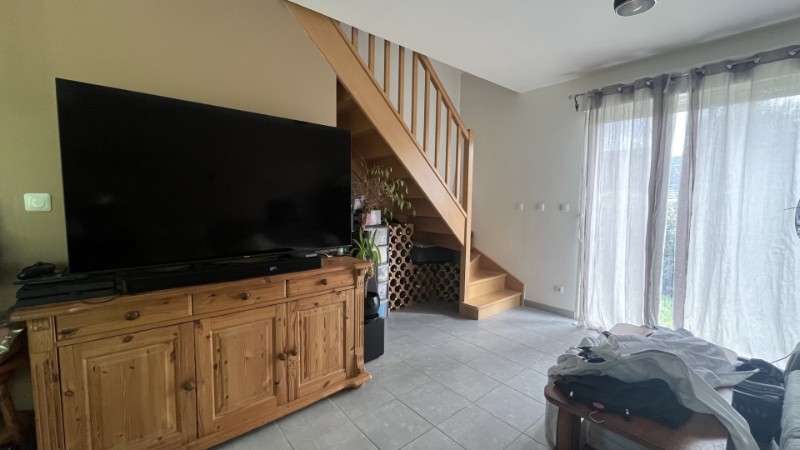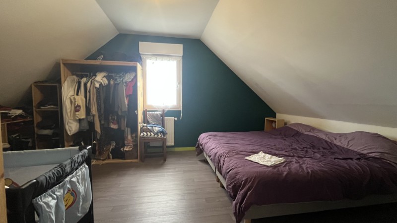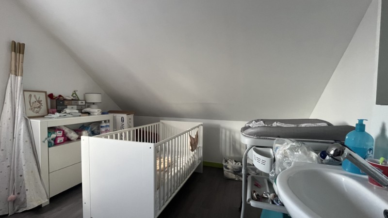 Surface habitable de 77.m² comprenant: Entrée, cuisine, cellier, salle / salon, salle de douche, wc, chambre.A l'étage: palier, wc avec un lave-mains, 2 grandes chambres.Cette maison est très lumineuse et bien isolée dans un secteur calme.Terrain de 620m² avec un abri de jardin et places de parking.Cette maison est actuellement louée 650€ / mois.