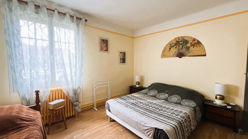 Comprenant: entrée avec vestiaire, wc, cuisine séparée aménagée et équipée avec coin repas, salle à manger avec poêle à granulés, salon avec climatisation.A l'étage: palier desservant 2 grandes chambres avec placards, bureau ou chambre d'enfant, salle de douche avec wc récente.Grenier isolé.Garage avec grenier de stockage.Panneaux solaires, abris de jardin.Mode de chauffage: Gaz de ville, poêle à granulés, climatisation.Terrain clos et arboré de 331m².